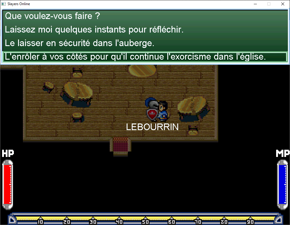 - Le laisser en sécurité dans l’auberge. (Mauvaise action)
