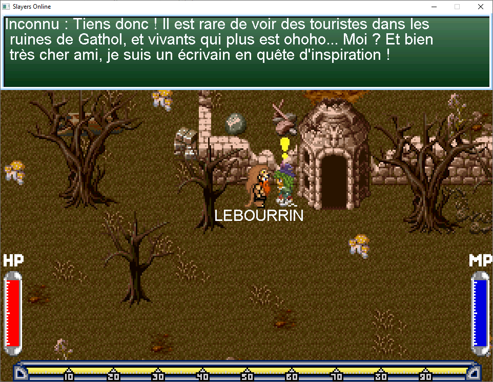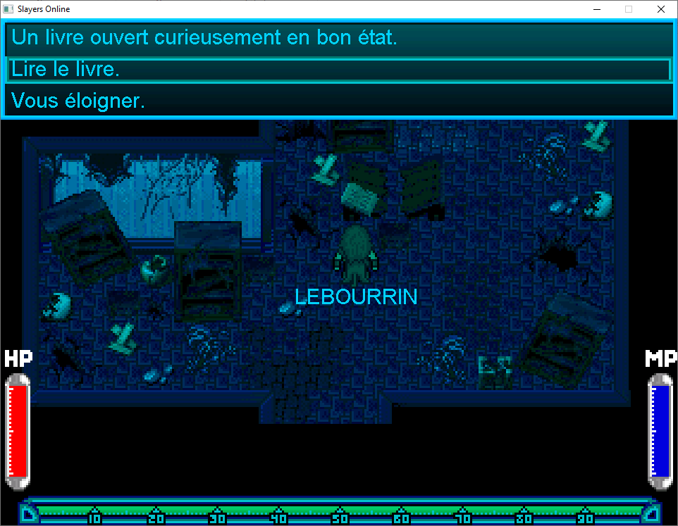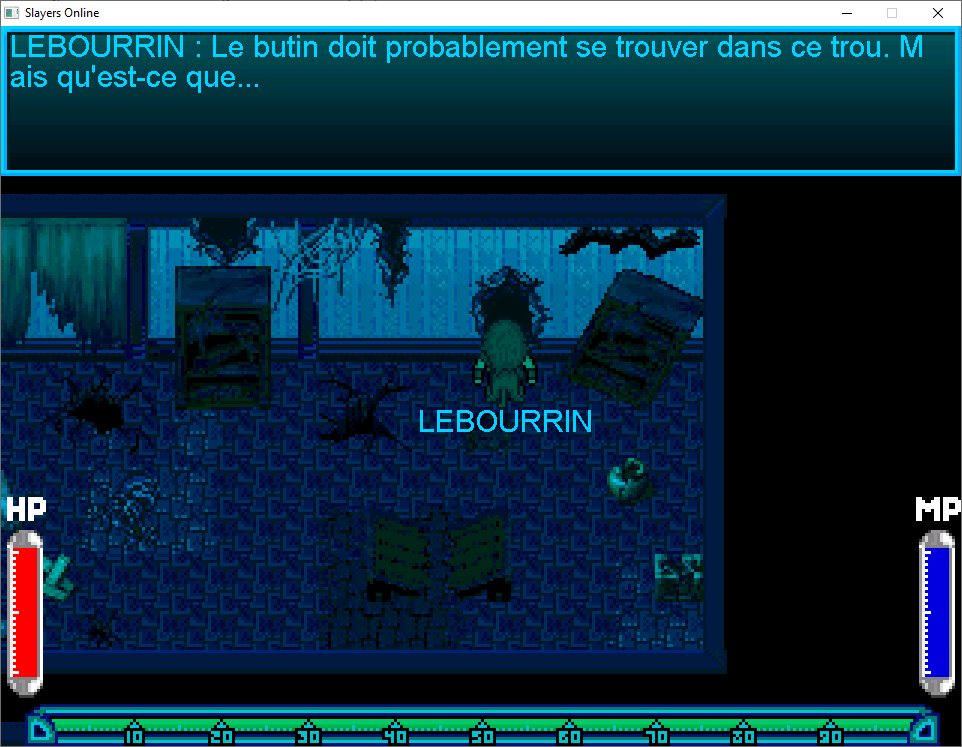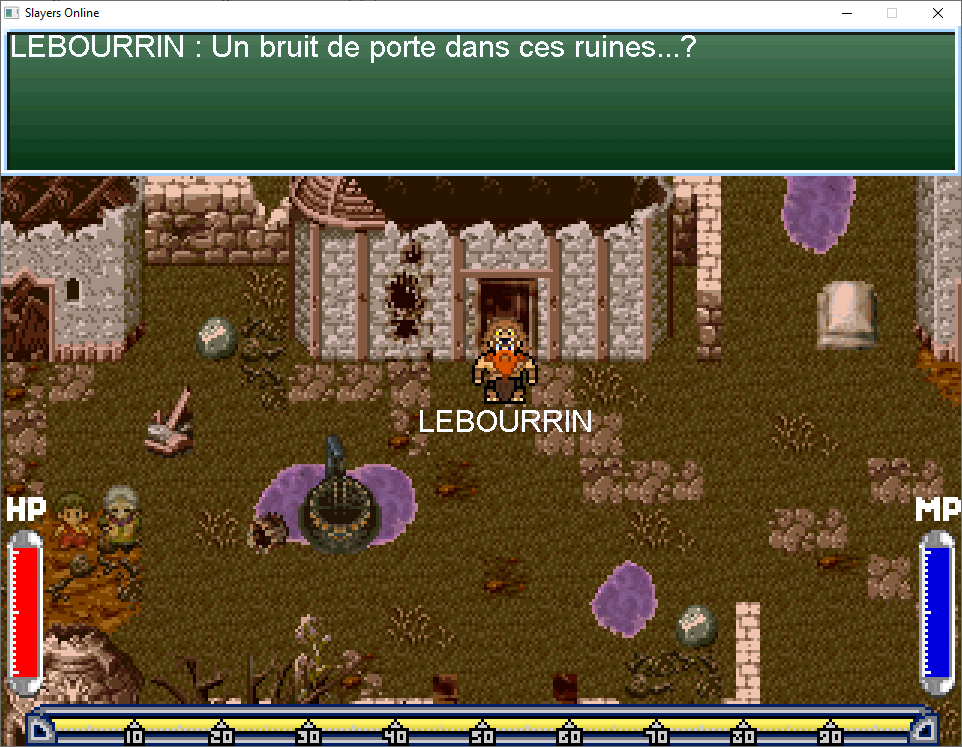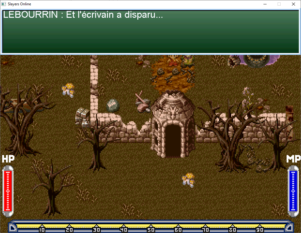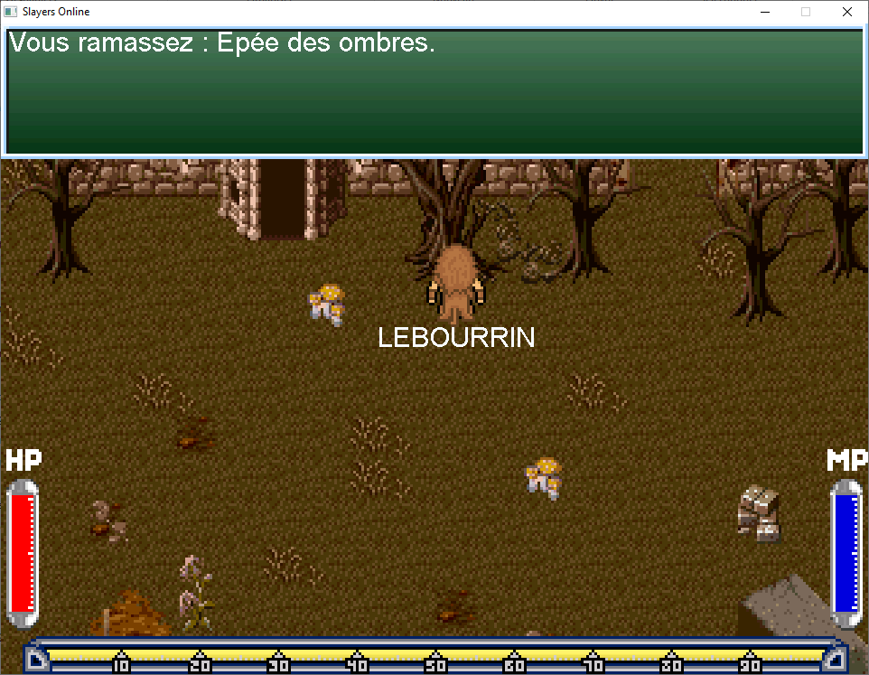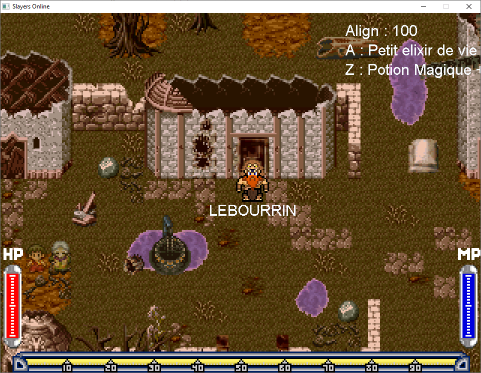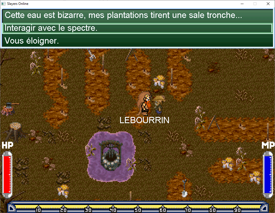 Vous arrivez dans une grotte, la fée vous permet, si vous le souhaitez, de remonter à la surface. Le squelette quant à lui vous permet de faire le plein de potions.