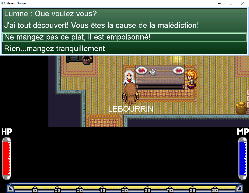 Interagissez avec elle pour la prévenir que le plat est empoisonné.