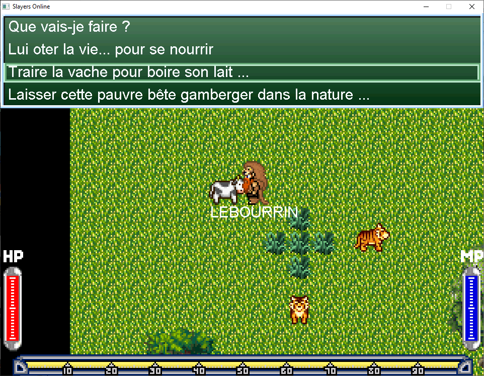 Maintenant tuez un tigre pour récupérer une viande crue. (Vous pouvez également tuer la pauvre vache).