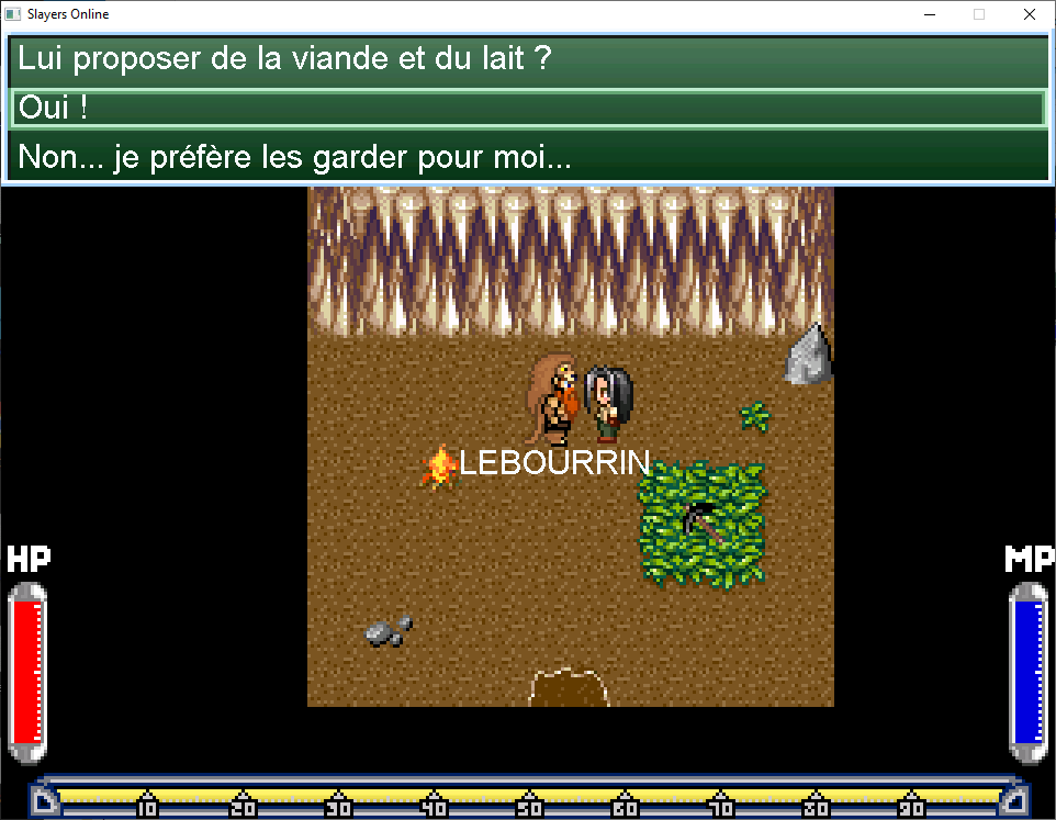 Parlez à l’aventurier qui a soif et faim et donnez lui du lait et de la viande.