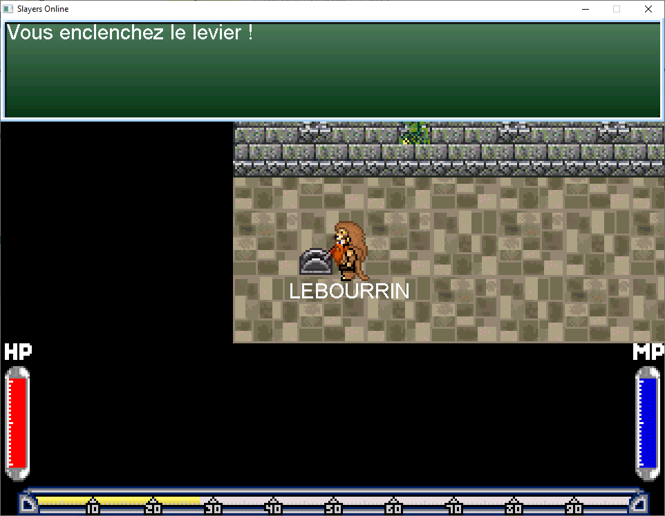 Traversez les piques, si vous touchez les mains vous serez ramené au début de la map. Prenez à gauche et allez actionner le levier