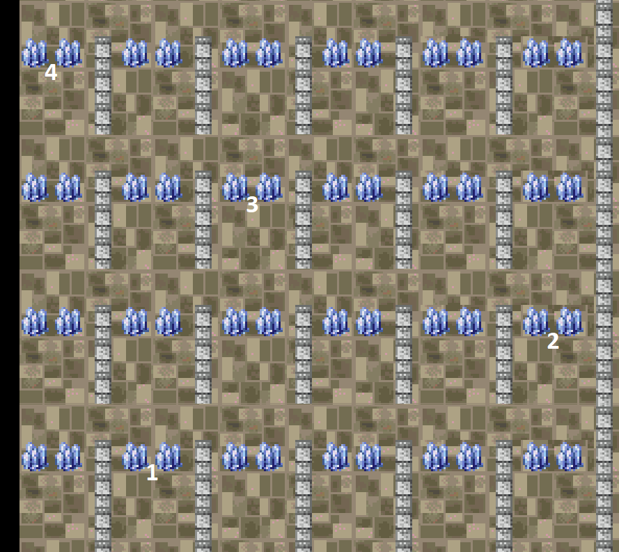Allez ensuite tout à droite et prenez l’avant avant dernier couloir vers le bas puis continuez le chemin jusqu’à arriver dans une pièce avec 5 cristaux.