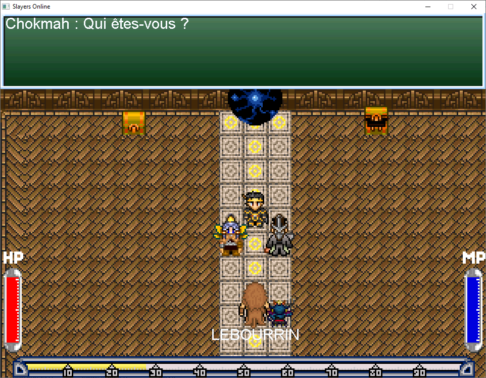 Après l’avoir vaincu il vous remercie et vous ramène à l’entrée du donjon.