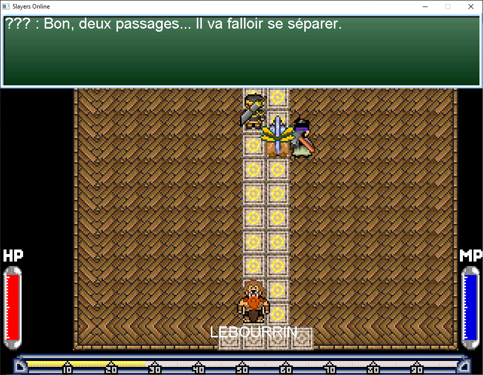 Entrez dans le donjon de Gjanajo, vous y apercevrez 3 aventuriers qui se séparent.