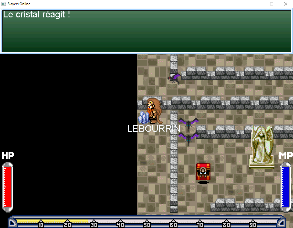 Vous arrivez à une nouvelle épreuve. Il faut sauter dans un trou, le trou est différent selon votre classe. Si vous vous trompez vous atterrirez dans une salle avec des mains et des chauves souris dont la sortie se trouve en haut de la carte.