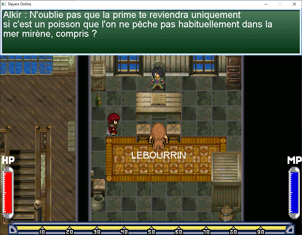 Alkir vous surprend devant la porte, il vous demande si vous savez pêcher et vous demande de lui rapporter un poisson rare qu’on ne trouve pas dans la mer Mirène et vous propose une récompense de 50 000po.