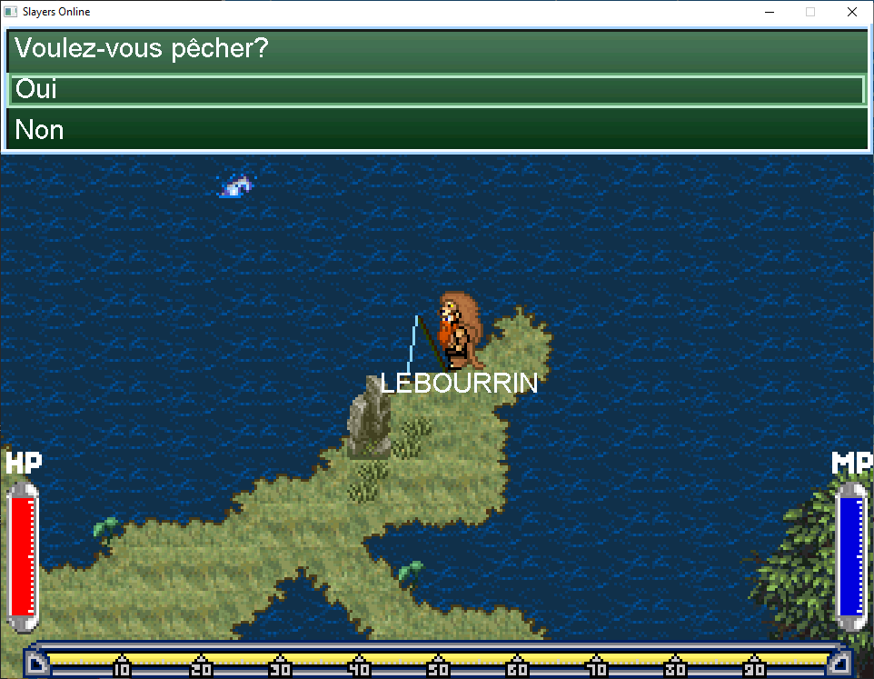 Montez maintenant tout en haut de la map et interragissez avec la canne à pêche pour commencer à pécher.