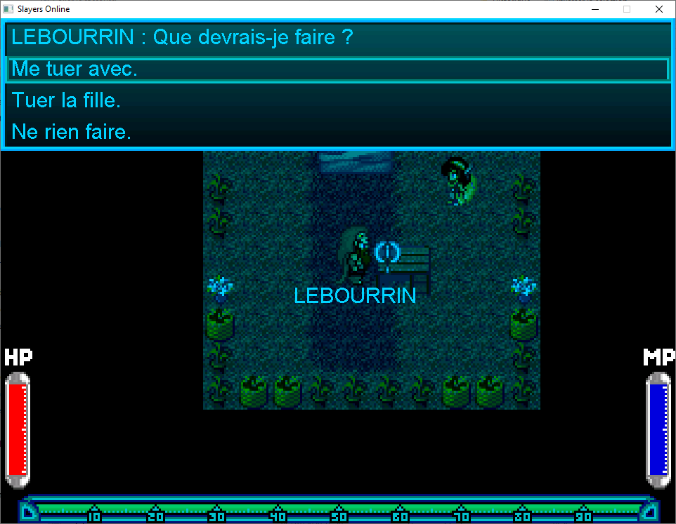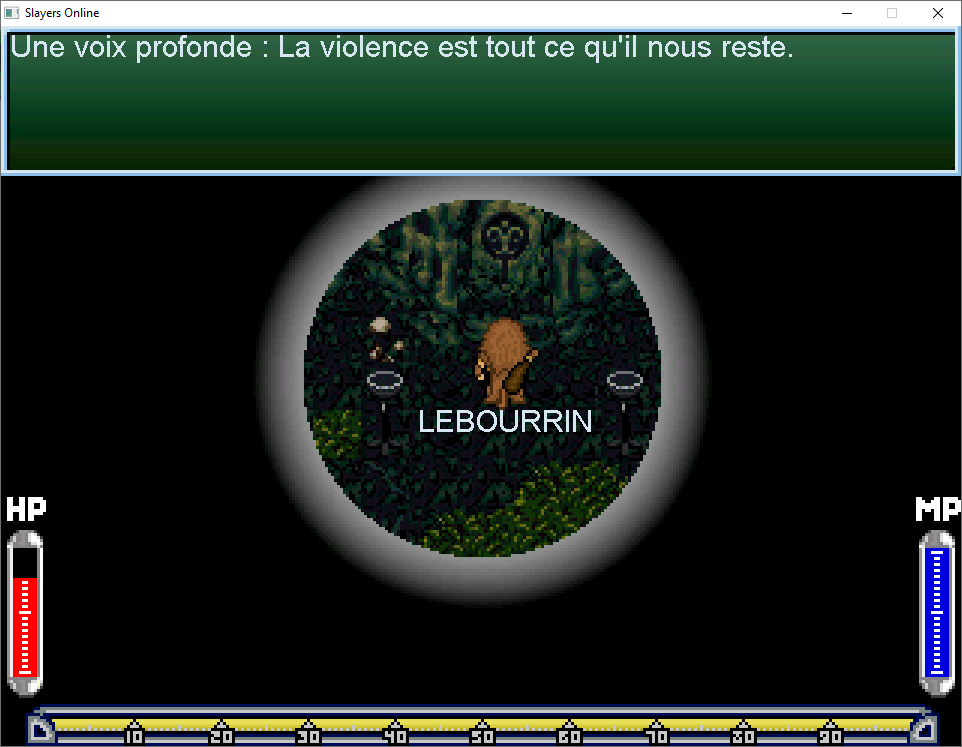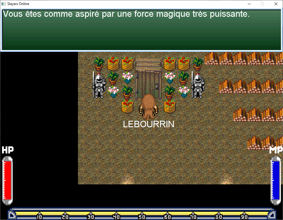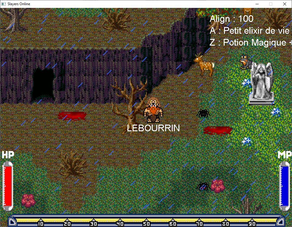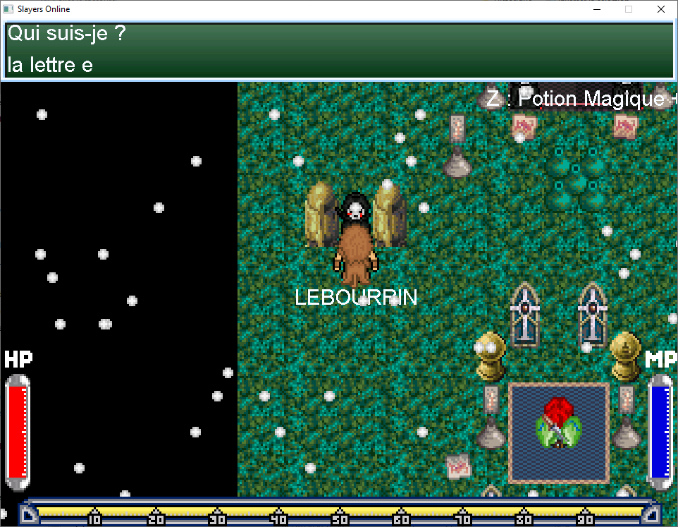 Vous arriverez dans une forêt, il faudra patienter exactement une minute pour pouvoir entrer dans la maison. N’attaquez pas les monstres, inutile de gaspiller vos potions, contentez vous de vous déplacer pour éviter leurs attaques.
