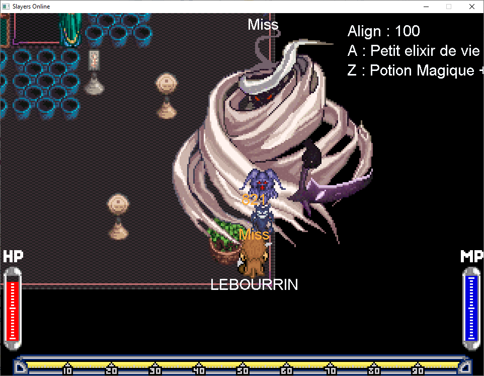 Je vous recommande vivement de faire ce boss en groupe, la plus grande menace d’Esprit Danava est sa magie Tornade qui vous inflige de nombreux ticks de dégâts. Il possède également beaucoup de points de vie 1 000 000 de pv pour être exact, si vous faîtes le combat seul vous risquez vite d’être à court de potion. Il y a de nombreux monstres sur la map, n’hésitez pas à mourir plusieurs fois pour isoler Esprit Danava sur un coin de la map et les monstres à un autre endroit ou encore à bloquer les monstres derrière Esprit Danava comme sur l’image ci dessous.
