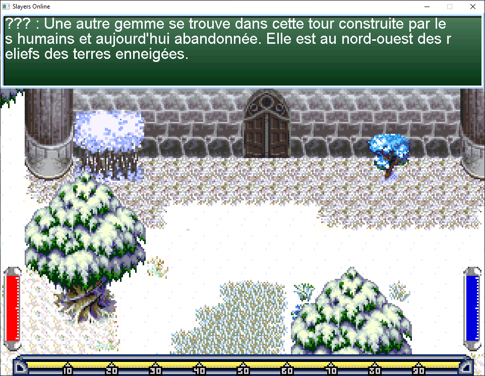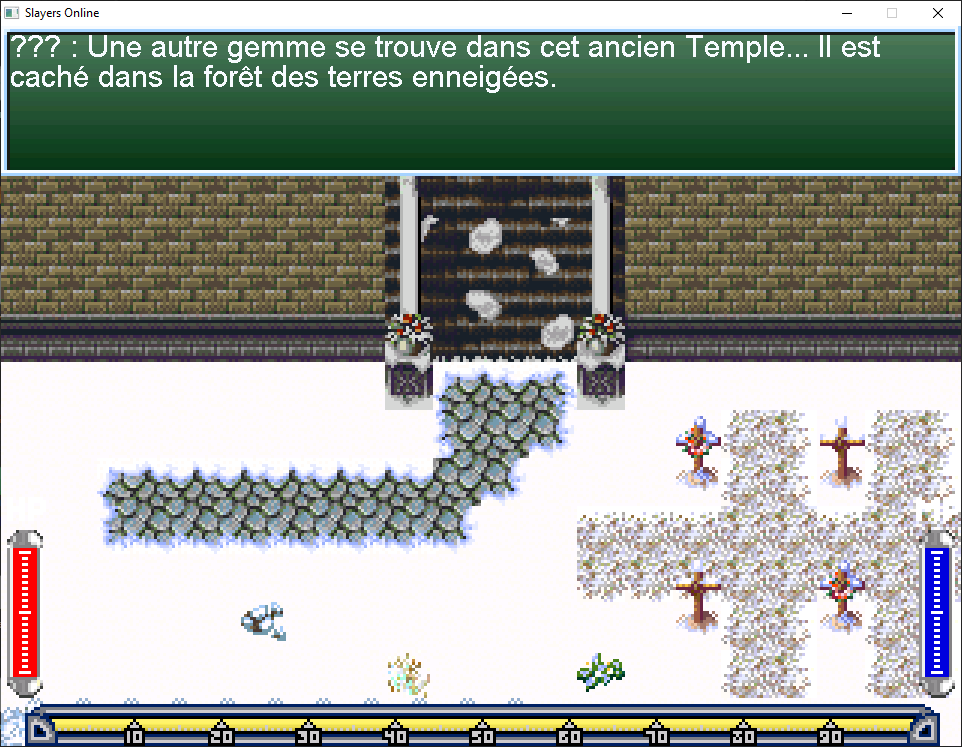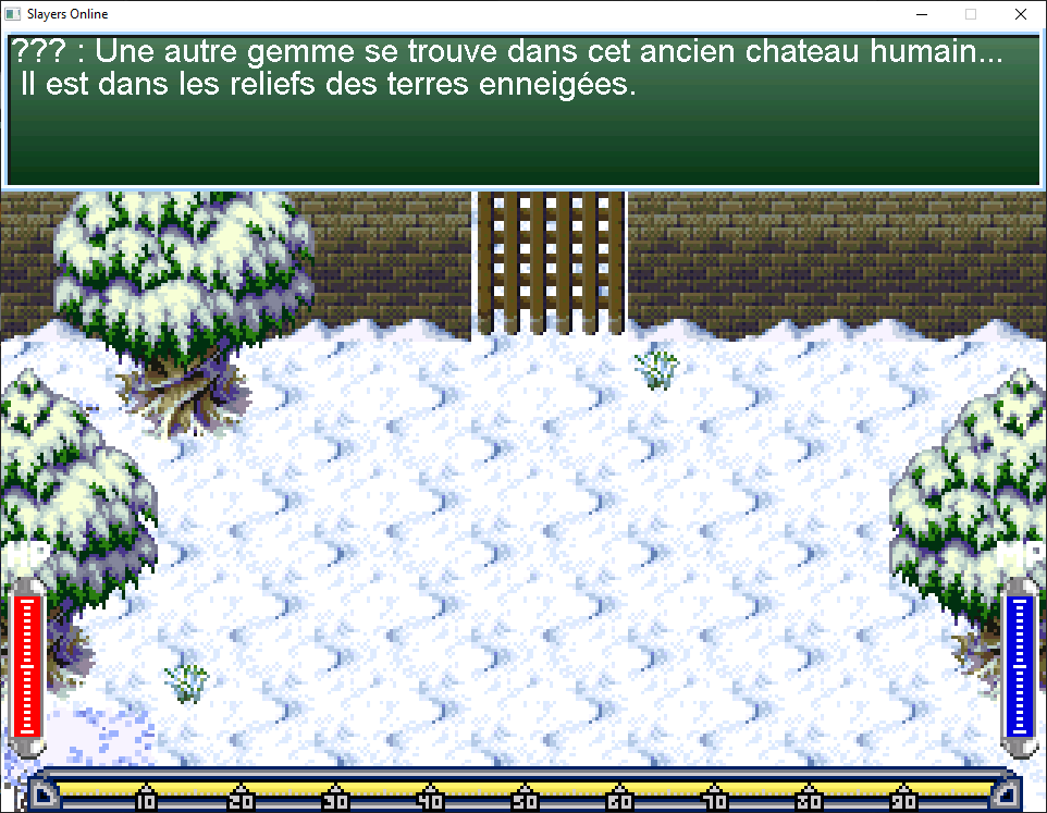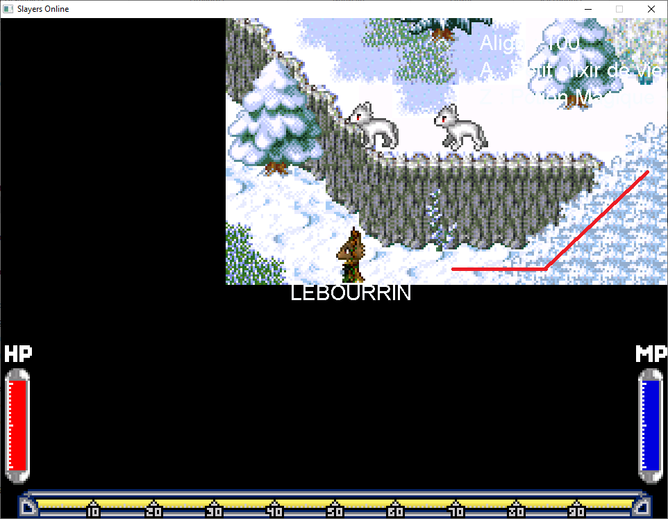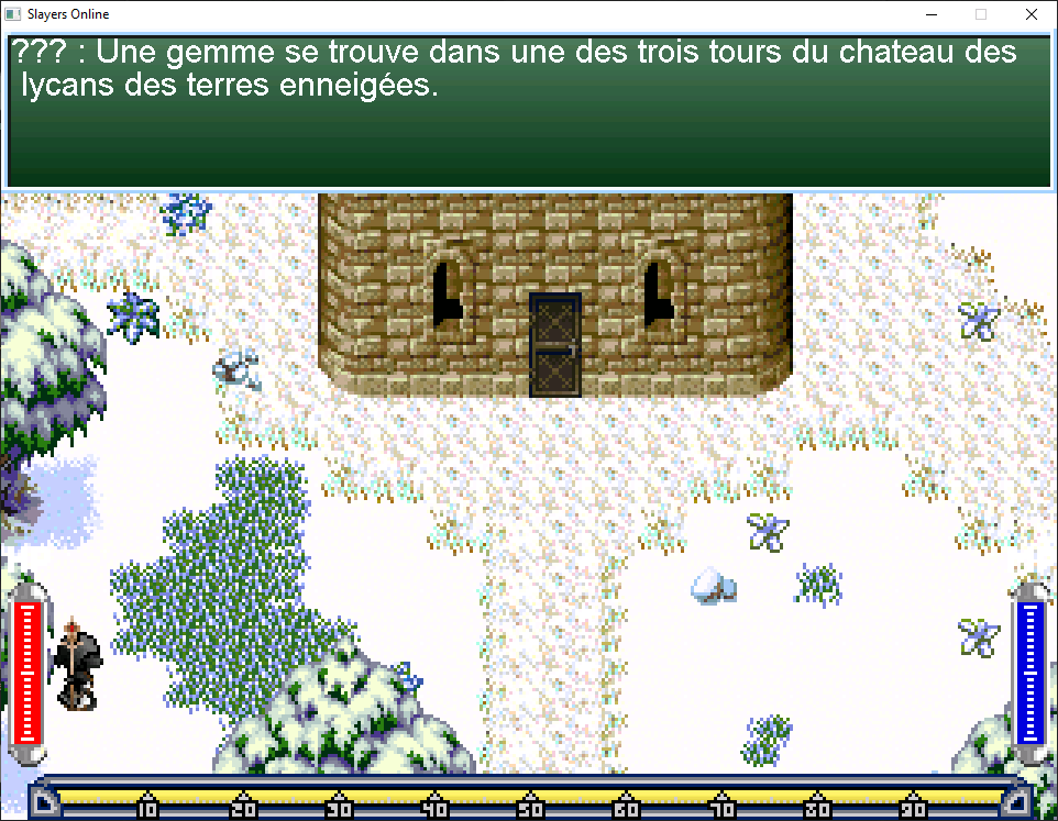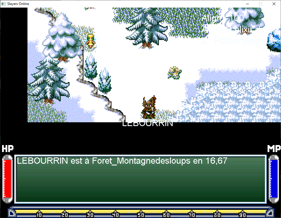 Faites le chemin dans la forêt des loups en direction des terres enneigées jusqu’à atteindre le bas de la montagne enneigée sur la map Montagne_Suitdesloups2.