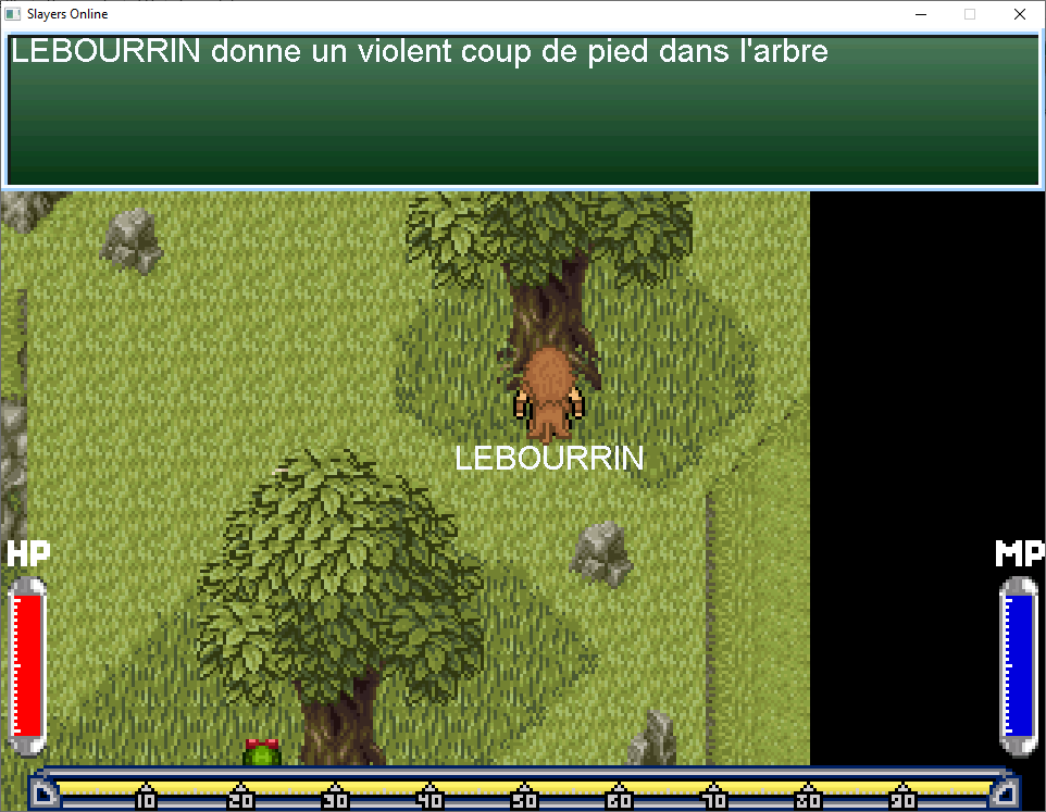 Reparlez lui près de l’arbre puis dirigez vous vers l’arbre en haut à droite et interagissez avec ce dernier pour lui assener un violent coup.