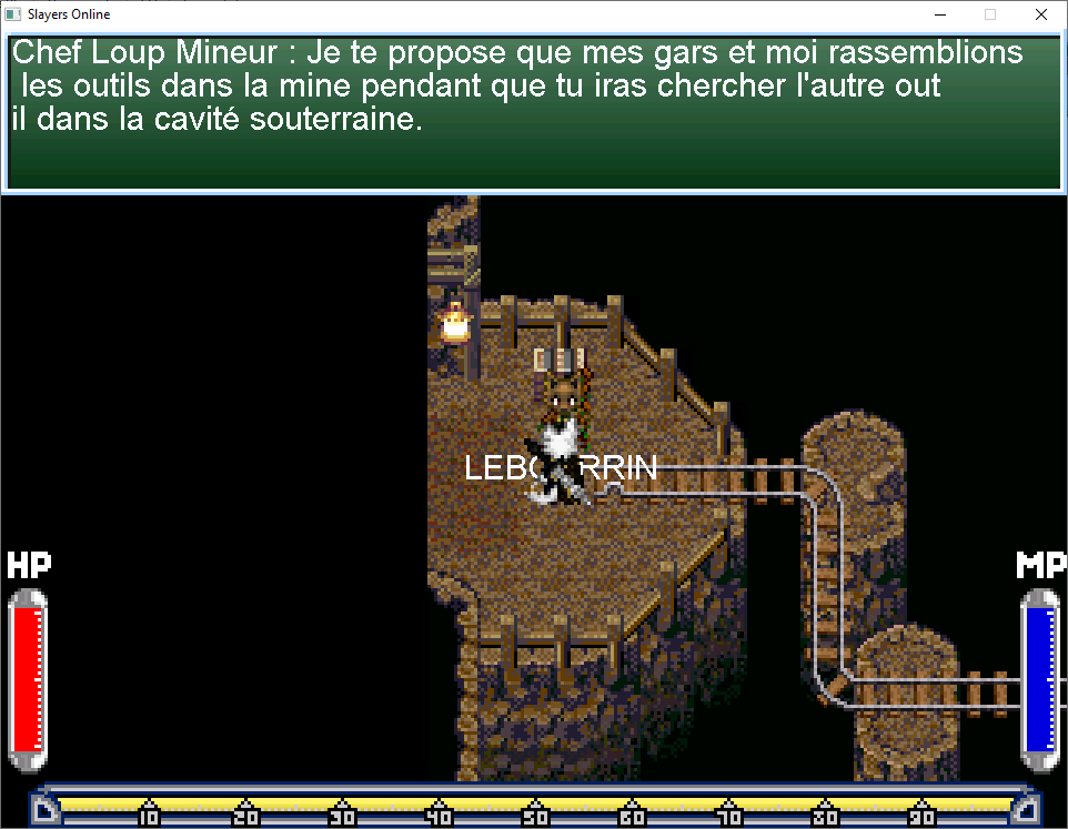 Retournez à l’entrée de la mine et interagissez avec le tas de pierre en haut à droite, à l’aide de votre pioche vous arrivez à dégager le passage.