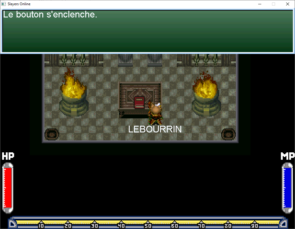 La flamme devient rouge, il ne vous reste plus qu’à activer le bouton derrière l’autel. (Si vous vous êtes trompé dans l’ordre la flamme deviendra verte et il faudra sortir et retourner dans la bibliothèque pour récupérer de nouveau les livres et les brûler).