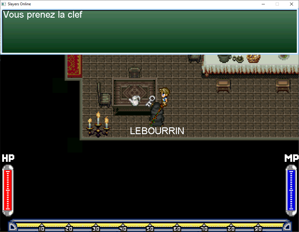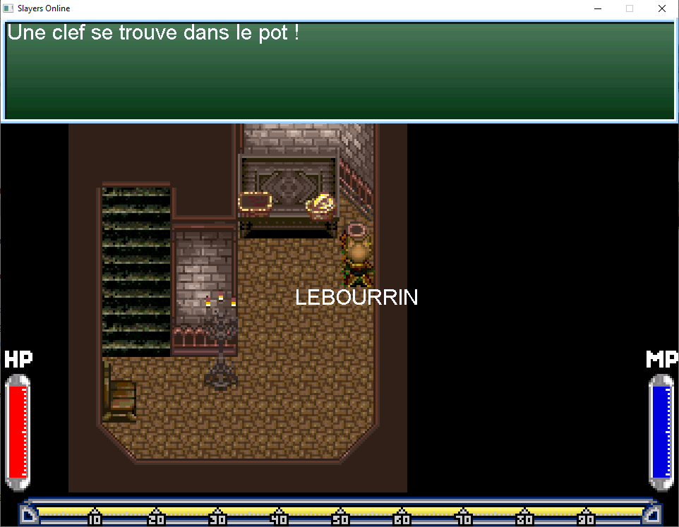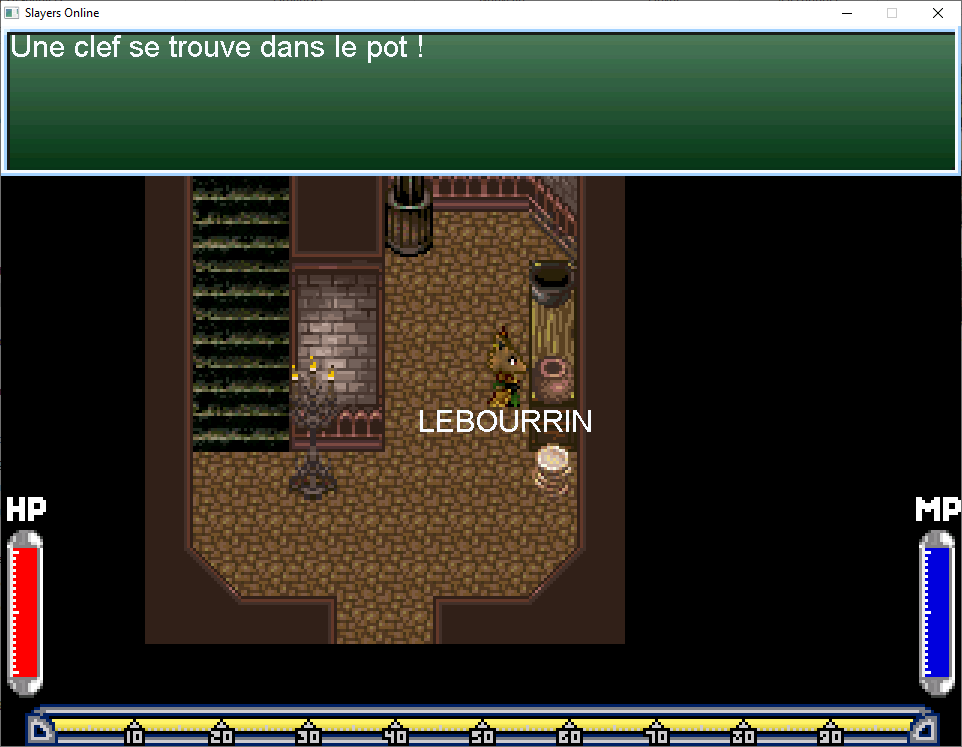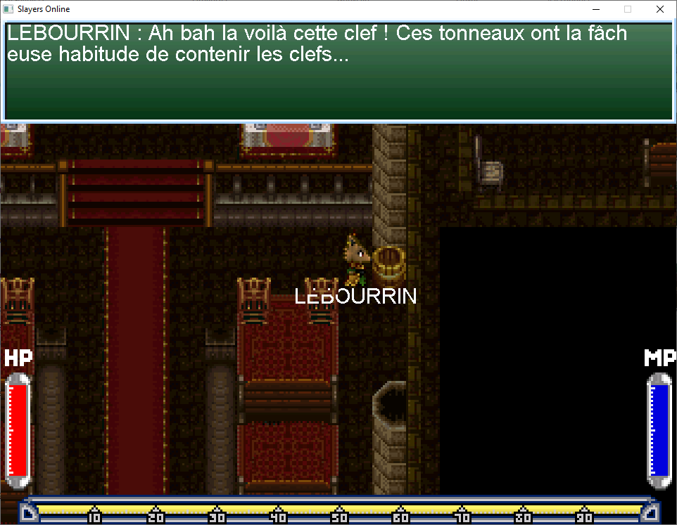 Retournez dans la grande salle et interagissez avec le tonneau en haut à droite pour récupérer des clefs.