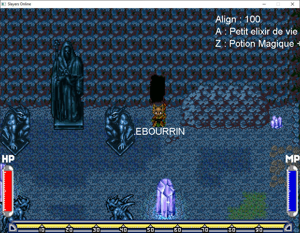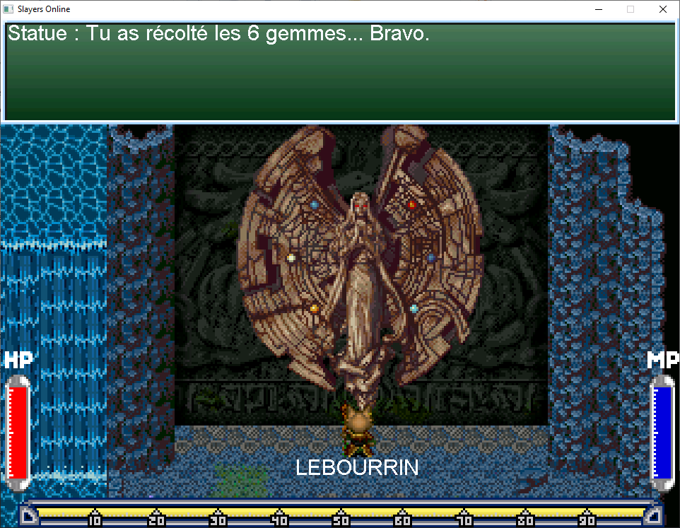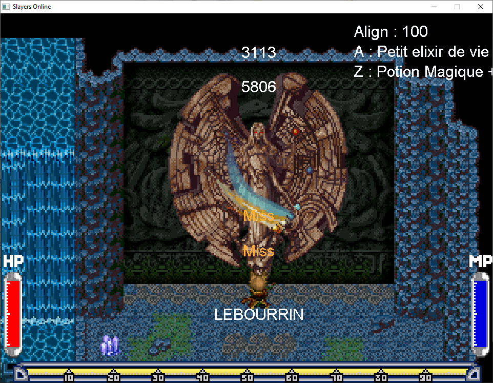 Comme tous les boss immobiles de Slayers Online, la Statue ne se régénère pas cependant fait très attention à ses attaques qui montent jusqu’à 4500 points de dégâts, en effet, il n’est pas rare de perdre presque instantanément près de 7000 pv. Prévoyez à cette effet de puissantes potions. Le plus grand danger durant le combat est lorsqu’elle utilise sa magie éboulement car ses attaques classiques peuvent s’ajouter aux dégâts magique. Quand c’est le cas ne soyez pas avare en potions.