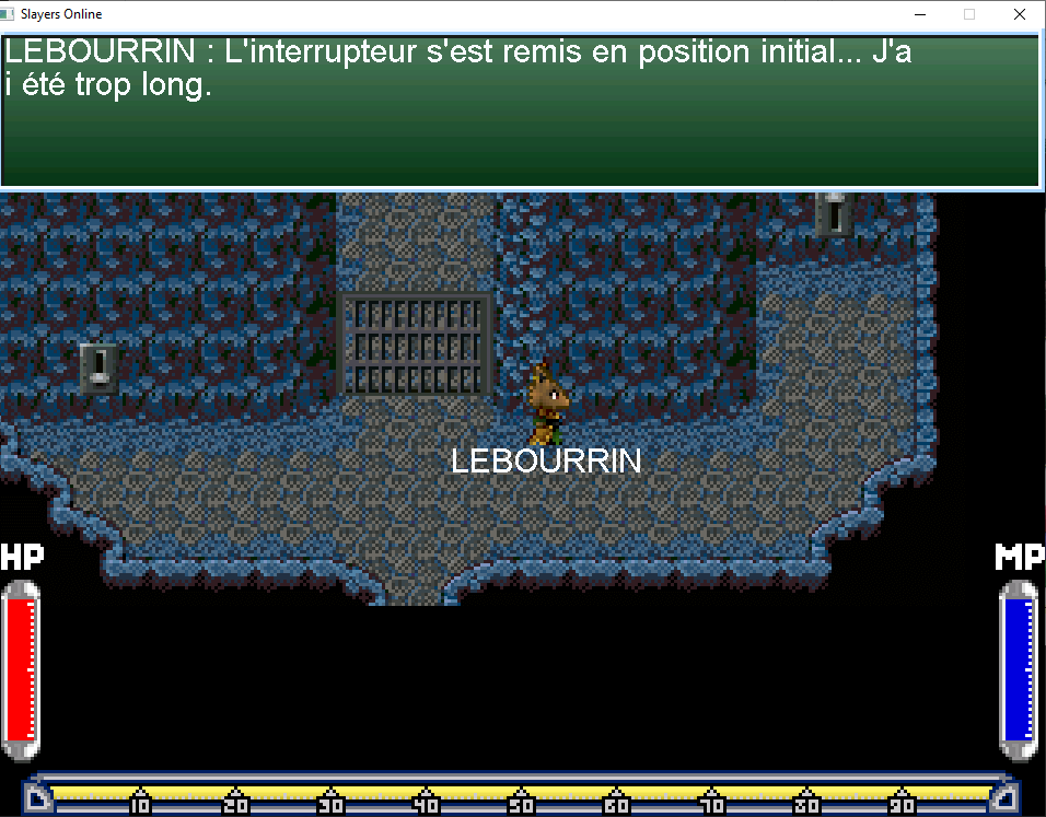 Retournez dans la salle avec la grille et interagissez avec l’interrupteur de droite pour indiquer à Blatus d’actionner également le sien.