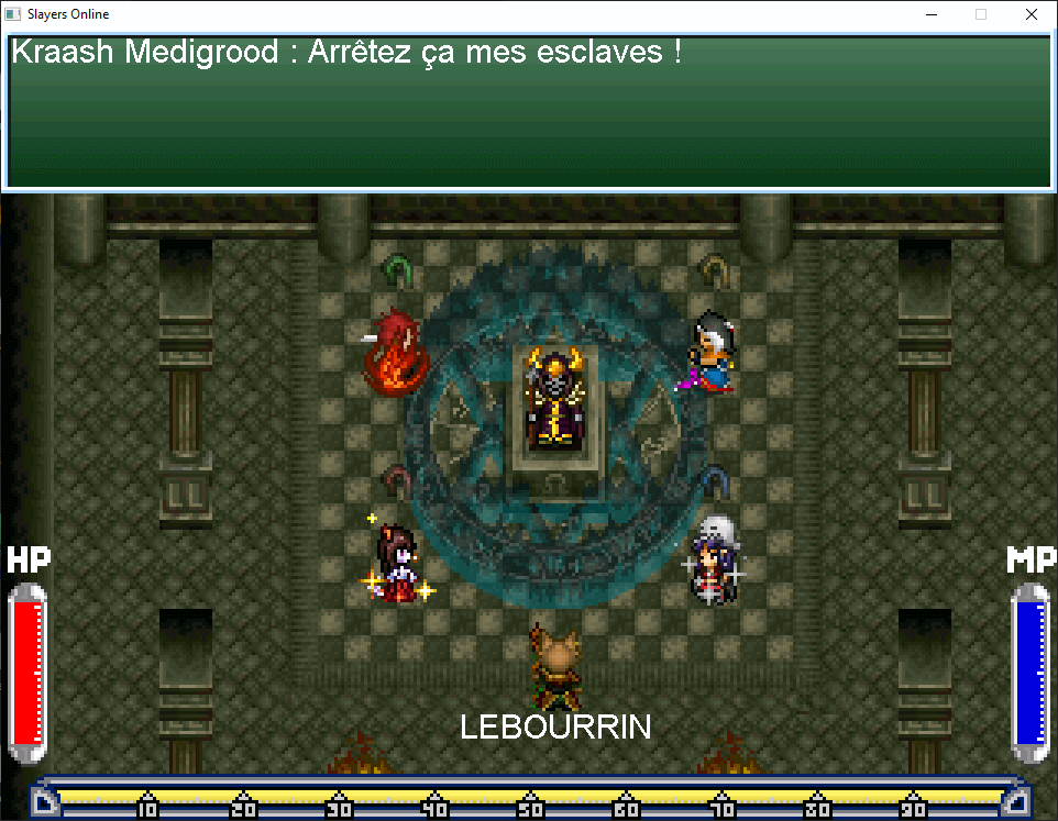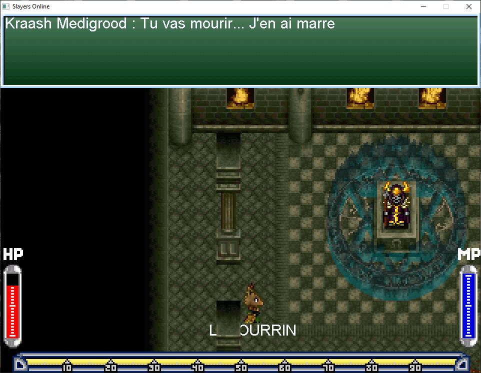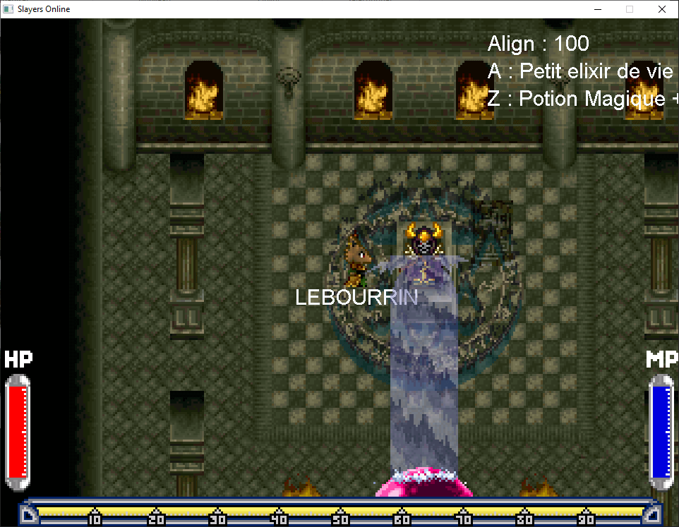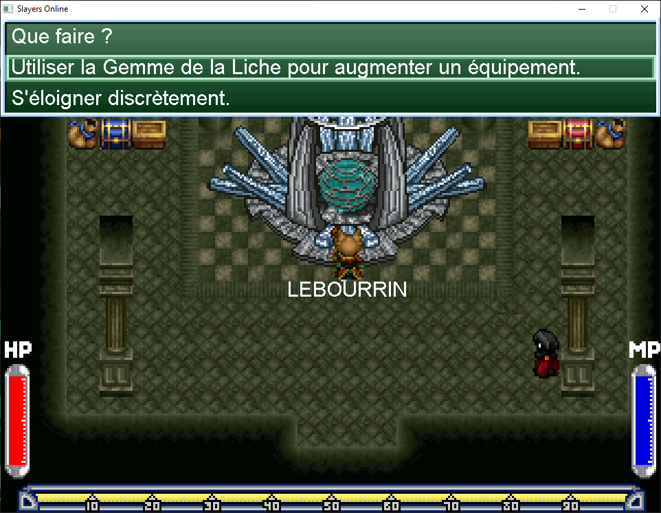 Vous êtes maintenant en mesure d’attaquer la Liche (si ce n’est pas le cas, il s’agit d’un bug, laissez-vous mourir et parlez à Iris pour reprendre le combat). Le combat sera long prévoyez sur vous au moins 1 million de pièces d’or pour pouvoir vous ravitailler en potion. Lorsqu’il utilise sa magie Cage de lumière fuyez et attendez qu’elle disparaisse ou que vous ne soyez plus dedans pour attaquer de nouveau la liche. Cette magie est le principal danger du combat, elle applique des dégâts en continu sur une zone. Je vous conseille d’utiliser votre potion magique lorsqu’une cage de lumière est sur vous, en effet l’utilisation d’une potion magique ne vous rend pas immobile pendant quelques secondes et vous permet à la fois de sortir de la zone d’effet et d’être soigné.
