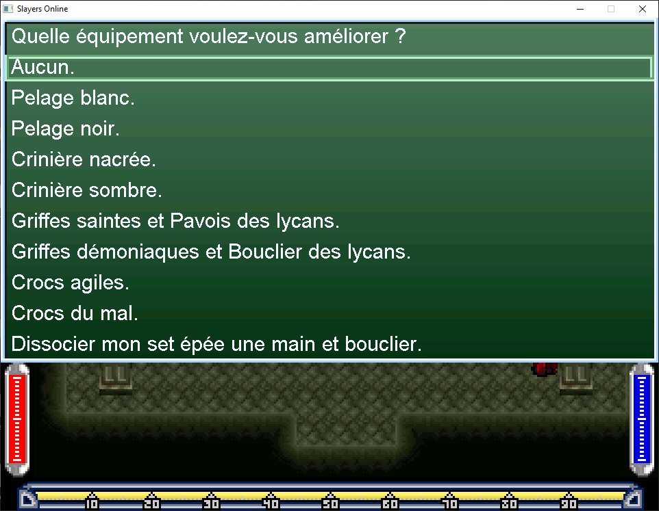 Au centre, la stèle magique vous permet d’enchanter votre équipement Lycan 2 en utilisant la Gemme de la liche.