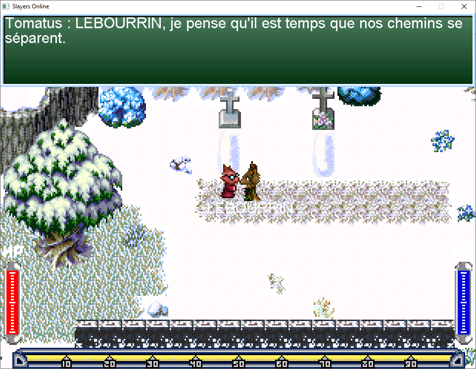 Retournez à l’entrée des terres enneigées sur la map Foret_Montagnedesloups c’est là que vous avez dû guider Mystrea et Nirmax pour échapper aux gardes.